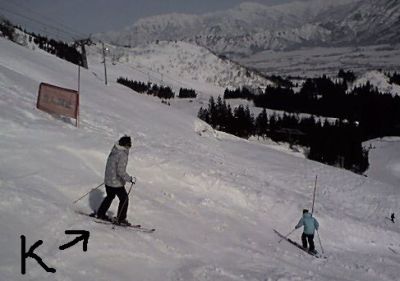 レンタルが混んでて手間取り、10時ぐらいから滑り始める。 K氏が「肉食え、肉」と言うので、ビーフステーキ(¥1500)を食った。肉好きだけどさ(笑) その後、広い上越国際のゲレンデ全制覇しようと、最奥の展望台まで移動。 その後、各自行動という事で、俺とK氏で滑った。 大沢ゲレンデに向かう手前に、狭い急坂&コブ斜面があったので止まって撮影に徹してみた。