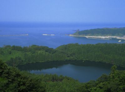 ※八望台から見た男鹿(手前はカルデラ湖)