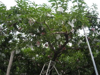 川中島白桃、上にあるのが甘いので梯子で狙う
