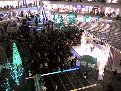 ルーファ広場の様子。SHOWTAのミニライブで人だかり。
