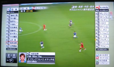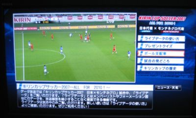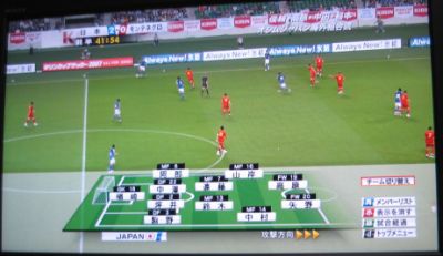 なんとか仕事を終え、前半途中から観戦。始めて地デジでサッカーを見たと思う。 (電波状況により、地デジが見れるのはNHK、TVK、フジ、日テレの5chだけ) (雨が降ったりするとTVKと日テレはノイズ大量発生…。録画はちょっと怖い)