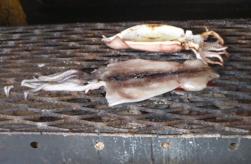 刺身(ヒラメ、ヒラメ縁側)と焼魚(イサキ?)がめちゃ美味かった。 この辺はイカ焼きが有名という事で、食後ではあるが近くのイカ焼き屋へ。