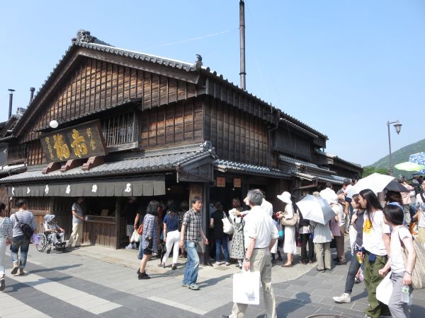 昼過ぎなので おかげ横丁で昼食を食おうと思うが、有名店には長蛇の列が。 外宮より内宮の方が、圧倒的に人が多い。そして広い。
