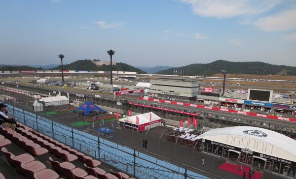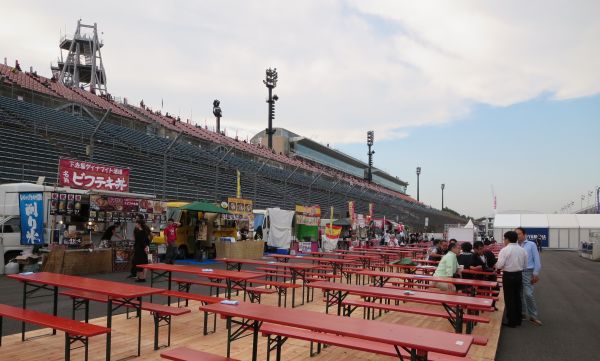 今回の目玉?オーバルコース上に作った屋台村&仮設スタンドの方へ。