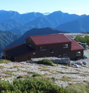 15時半に小屋に到着、荷物を置いたら外に出てビールで乾杯! ウインドブレーカーを羽織っていたが、着替えずに飲んでたので体を冷やす。 夕飯は2巡目、17:30過ぎと言うことで少し待つ。