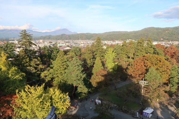 会津若松の町を一望、そこそこ紅葉している。 最後は土産屋になってて、ざっと見たけど特に欲しいものは無く。