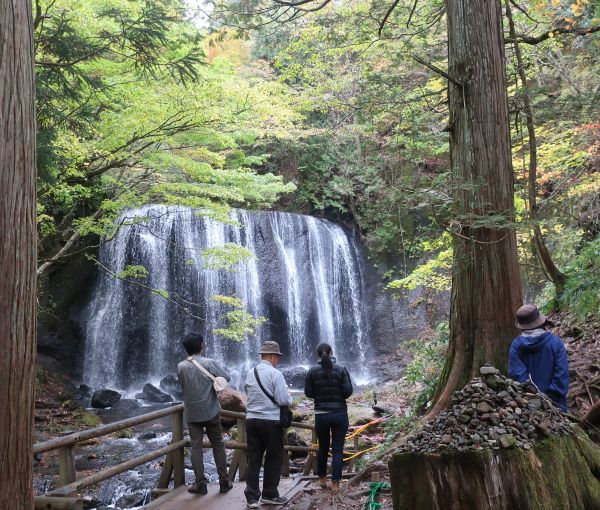 いろんな作品のロケ地・PV撮影やイベントに使用されてる模様。 さくさく歩いて30分ほどで見終わり地上へ。ゆっくり見ても1時間ぐらいかな。 朝遅れた時間を取り戻し、予定通り10時に出発する。 県道22走り、次は広域農道に入る予定が途中で道を間違え県道279で北上する。 R121から鬼怒川有料道路へ。 11時過ぎに、龍王峡の駐車場に到着した。 遊歩道を降りると、最初に大きな滝がある。