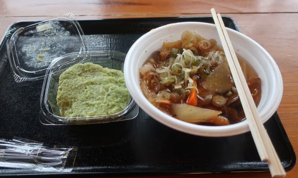 道の駅 つちゆで少し休憩、11時45分で昼前だ。 フードコートでずんだ餅ときのこ汁を注文する。