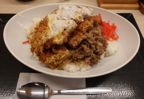 牛丼はどこのチェーンとも違うが、ちゃんと美味しい。 せっかくなので特盛り(カツ2枚)にしてみたが、後半は油がきつくなり 近所で給油して、17時頃に帰宅した。