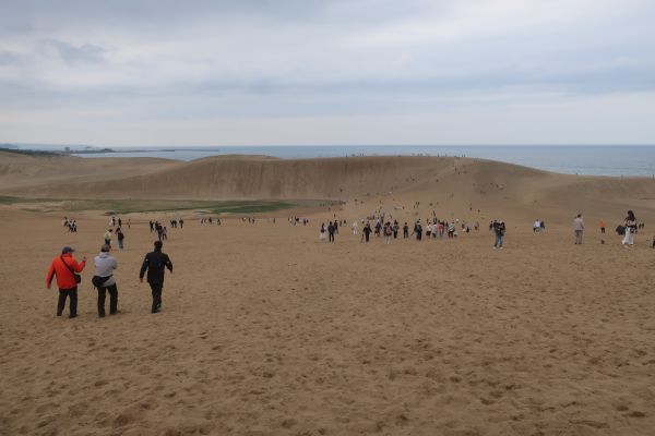 ステーキめちゃ美味かった。野菜が多くてヘルシーだったし。 鳥取砂丘の手前で小雨が降ってきた。 砂丘前にある喫茶店の駐車場に入って、コーヒー飲みつつ10分ほど休憩。 外に出たら、雨が止んでた。